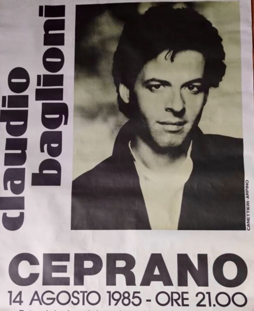 Una mia esperienza fatta con Claudio BAGLIONI è stata a CEPRANO(Fr) il 14 agosto 1985 quando lui venne a fare un “Concerto” memorabile per tanti motivi ed ebbe un successo contro le nostre più rosee aspettative, io collaboravo con il “Gruppo” organizzativo capeggiato da Paolo e Luciano Argentino con tanti altri amici. Un evento davvero unico ed io ebbi un ruolo importantissimo, nel retro palco Baglioni mi chiese di suggerirgli un ristorante per il dopo Concerto ed io gli indicai “Le Villette” famosissimo e gettonassimo all’epoca, gestito dal mio amico Maurizio ed io mi aggregai al gruppo, per me fu un’emozione incredibile che non dimenticherò mai.
