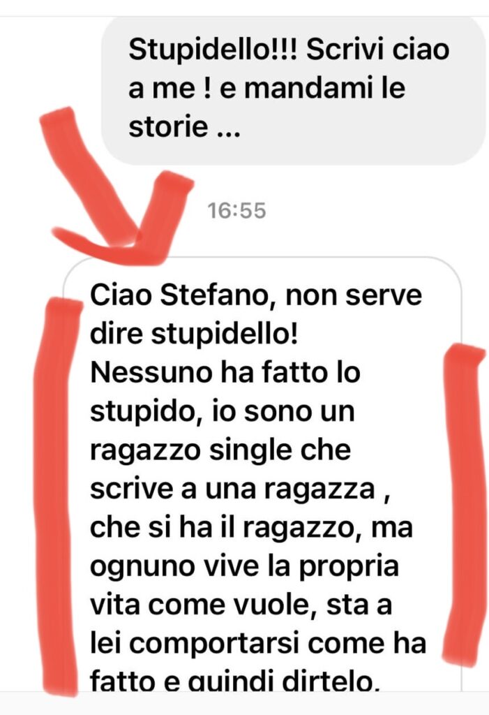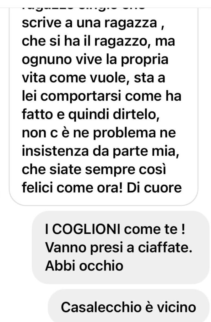 Piccatina la risposta del “sarò Calciatore” : “…io sono un single che scrive ad una ragazza, che si ha il ragazzo, ma ognuno vive la propria vita come vuole, sta a lei comportarsi come ha fatto e quindi dirtelo.”