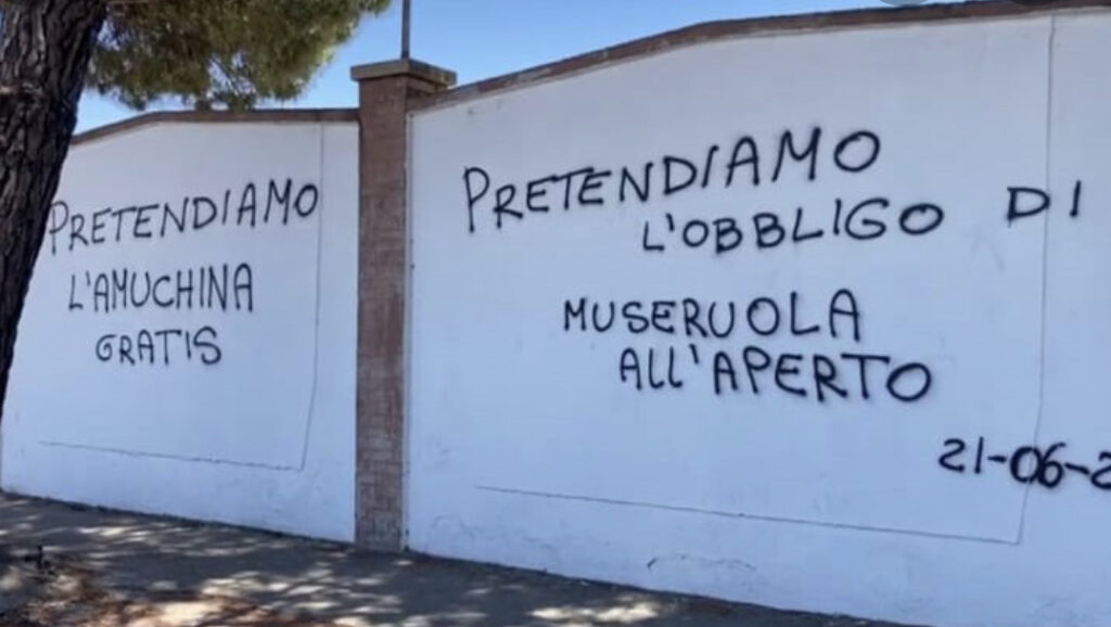 —— Non si placa la rabbia dei “No Green Pass”, proseguono le azioni offensive contro lo Stato. Durante la notte qualcheduno con una bomboletta spray nera, ha scritto sui muri di un bagno pubblico di fronte al tribunale di Roma, i nomi delle 12 persone di coloro che sono state arrestate in seguito ai dissidi accaduti sabato nel centro di Roma, durante la manifestazione “No Green Pass”, che ha creato tumulto e disastri.