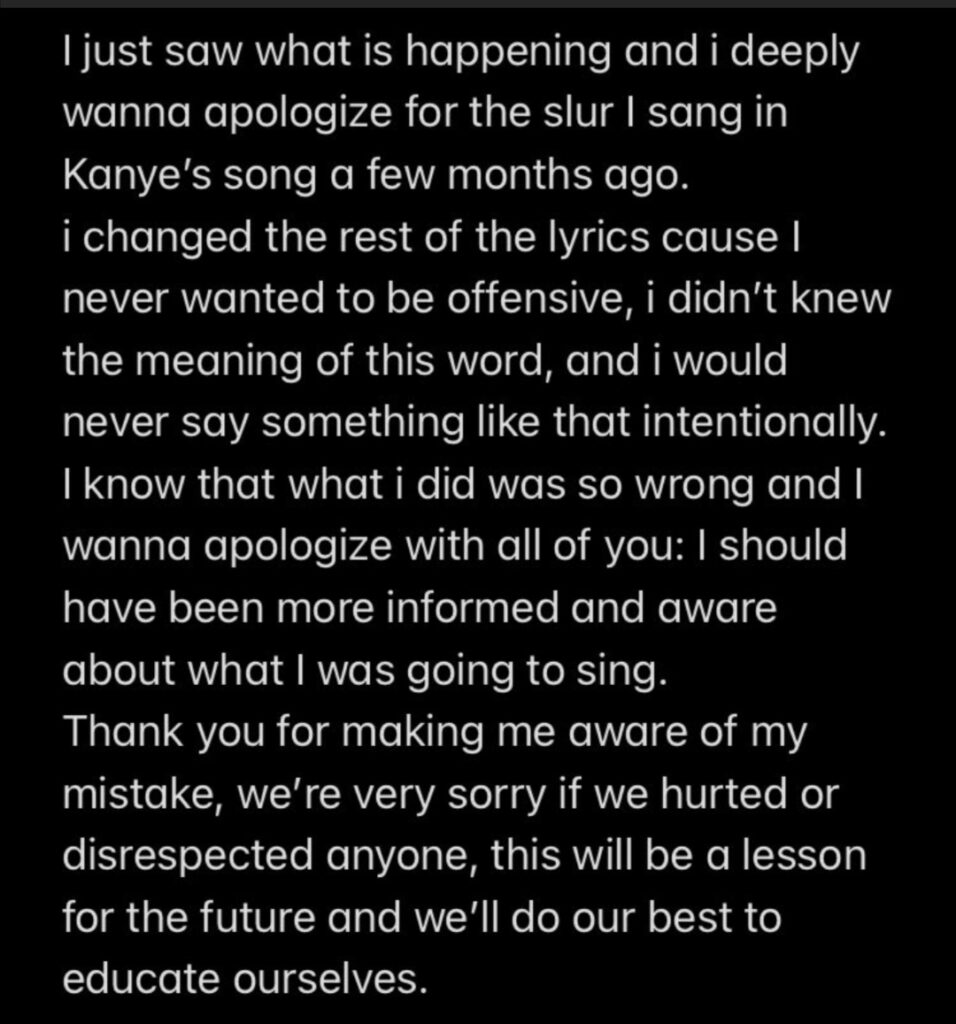 — Maria Vittoria CORASANITI — In queste ore Damiano dei Måneskin è sotto l’occhio del ciclone. Tutto è nato in seguito all’esibizione del concerto a Berlino, lo scorso 16 giugno. In quella occasione ha cantato la canzone “Black skinhead” del rapper americano Kanye West, essa contiene il verso “stop all that coon shit”. Il termine “coon” è usato nel senso dispregiativo di ‘ne*ro’. I musicisti di origine africana utilizzano specifici termini, per porre l’accento su atteggiamenti razzisti. Solitamente gli artisti di altra etnia, quando cantano cover di codesti artisti, per non incorrere a polemiche o falsi pregiudizi, censurano determinate parole. Scelta non adottata da Damiano, ed ovviamente il particolare è stato notato dal popolo del web, che hanno espresso il loro sdegno sui social network. Soprattutto dopo il video postato dai Måneskin su Tik Tok. Damiano per placare gli animi ha chiesto scusa attraverso un tweet, spiegando che il suo gesto non è stato fatto di proposito e, di non conoscere il significato di quel termine: “Ho appena visto cos’è successo e voglio scusarmi profondamente per la parola offensiva che ho cantato nella canzone di Kanye qualche mese fa. Non avrei mai detto qualcosa del genere intenzionalmente. So che ciò che ho fatto è sbagliato e voglio scusarmi con tutti voi. Avrei dovuto informarmi meglio su ciò che stavo cantando. Ci scusiamo se abbiamo ferito o mancato di rispetto a qualcuno. Questa sarà una lezione per il futuro e faremo il nostro meglio per istruirci”. Vogliamo credere nell’ingenuità di Damiano, ma nello stesso tempo, concedeteci il beneficio del dubbio. Ogni musicista che lavora in maniera professionale, sceglie accuratamente i brani da proporre nei concerti, poiché attraverso la musica si vuole parlare al cuore delle persone. A volte volutamente, si cerca di creare dinamiche atte a fare parlare di sé.. È umano sbagliate ma è altrettanto umano essere diffidenti.