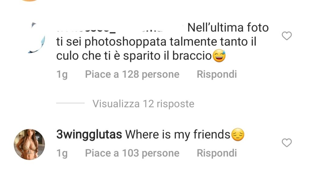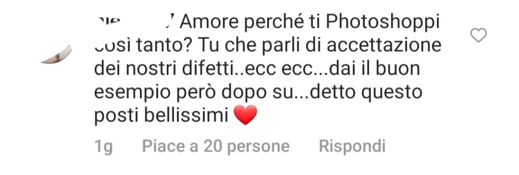 Come abbiamo scritto sopra, tra I commenti positivi ci sono stati quelli negativi, alcuni hanno poi fatto riferimento anche all’utilizzo di eccessivi filtri e applicazioni di foto ritocco. Lei è rimasta in silenzio, non ha voluto farsi coinvolgere e non ha risposto alle critiche.