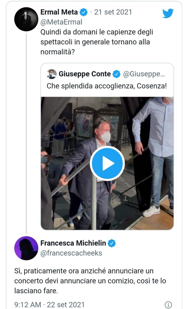 Ancor prima di Fedez, è stato Ermal Meta a dire la sua, condividendo su Twitter un video di Conte, e scrivendo: