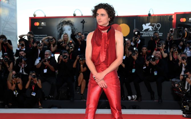 L’attore protagonista Timotheè Chalamet ieri sera ha sfilato sul red carpet infuocando la passerella del Lido.