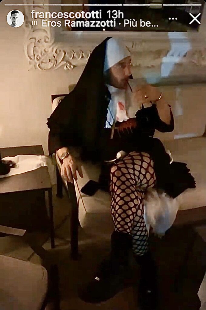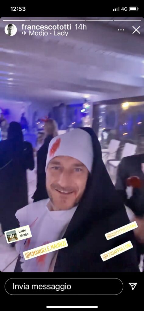 Una suora un po’ horror e un po’ sexy. che  @francescototti ha scelto per festeggiare Halloween.L’ex capitano della Roma si è travestito da suora insanguinata, con ricchi dettagli sexy, per festeggiare insieme ad un folto gruppo di amici. Sapevamo della sua vena ironica e da guascone, questo ce lo fa amare di più oltre le sue gesta calcistiche ormai consegnate alla storia…Buon divertimento Capitano.