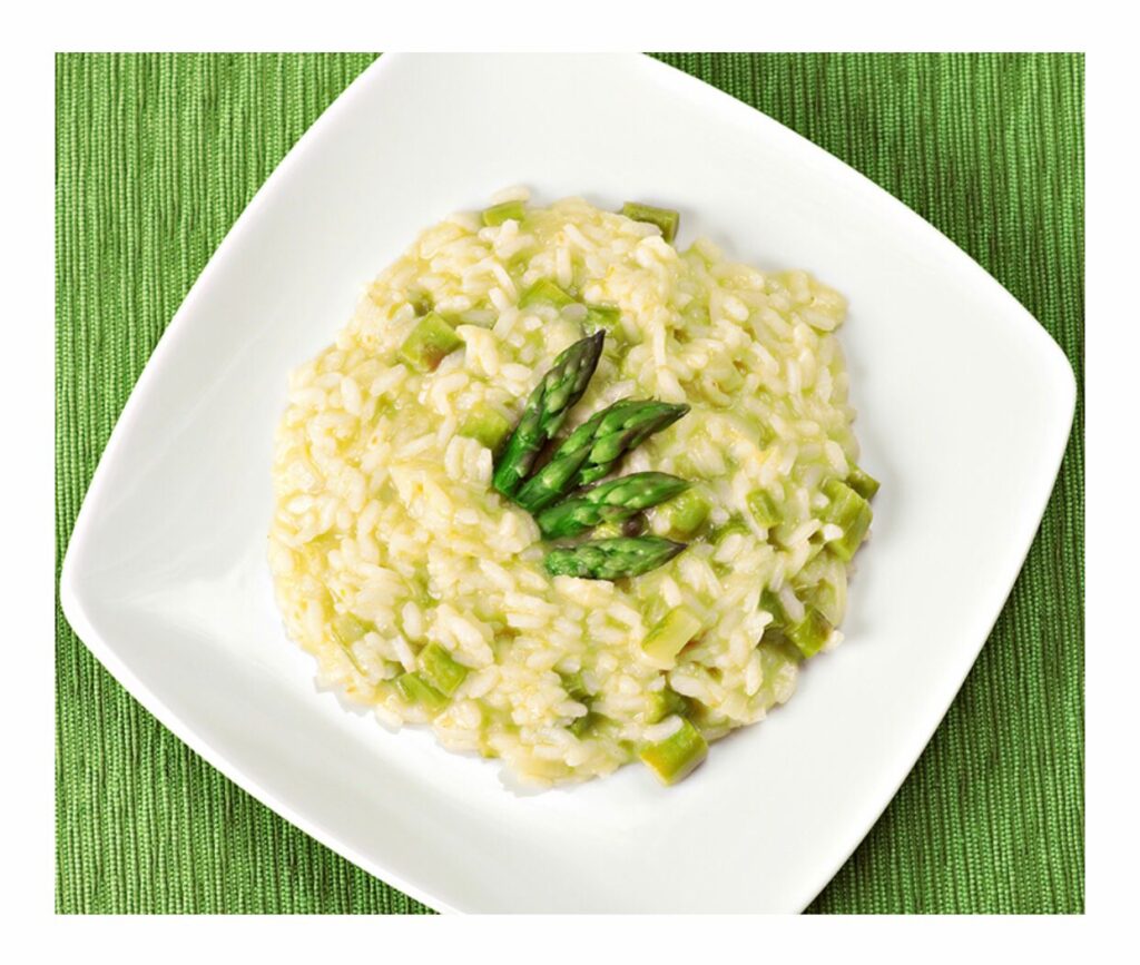 Cuociamo gli asparagi in una pentola con acqua bollente salata per dieci minuti lasciandoli croccanti, scoliamo tenendo l’acqua di cottura che ci servirà per cuocere il riso.