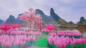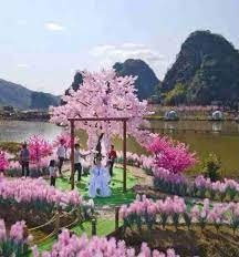 Ha trasformato un piccolo lembo di terra desolata vicino al suo villaggio in una splendida isola d’amore, una panorama da favola, completo di alberi di ciliegio (finti), altalene, rocce ruscelli, fiori profumati e colorati di rosa.
