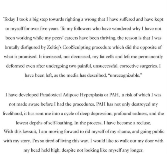 Sono tutti corsi in supporto della top model, elogiando la forza e la potenza del post, ma dimenticando che sono stati proprio i commenti sui social ed i titoloni sulle riviste, sull’aspetto fisico e sul tempo che passa, a spingerla ad inseguire il sogno impossibile dell’eterna e statuaria giovinezza.