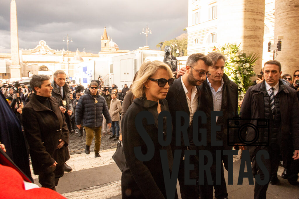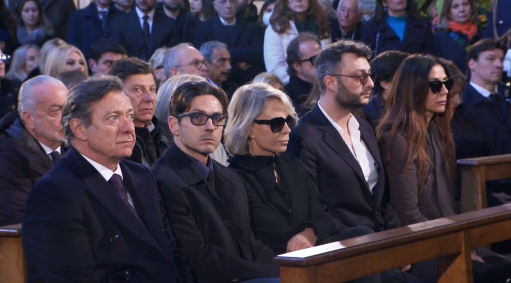 La primogenita Camilla, accanto al fratello Saverio lo saluta cosi: “Ti immagino in Paradiso che organizzi un talk show“, poi la preghiera degli Artisti letta da Gerry Scotti e il dolore evidente, stampato sul volto della moglie Maria De Filippi e del loro figlio Gabriele, non meno dolore su quelli di Camilla e Saverio, gli altri figli di Costanzo, sempre insieme uniti nel loro intimo dolore.