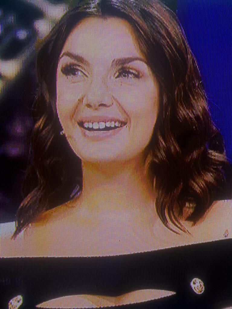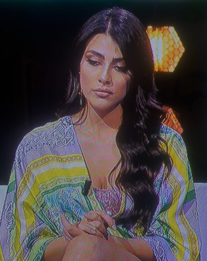 Fra le ospiti di questa sera,Giulia Salemi con la sua lunga chioma scura,sceglie una bellissima piega ad onde con la riga laterale.