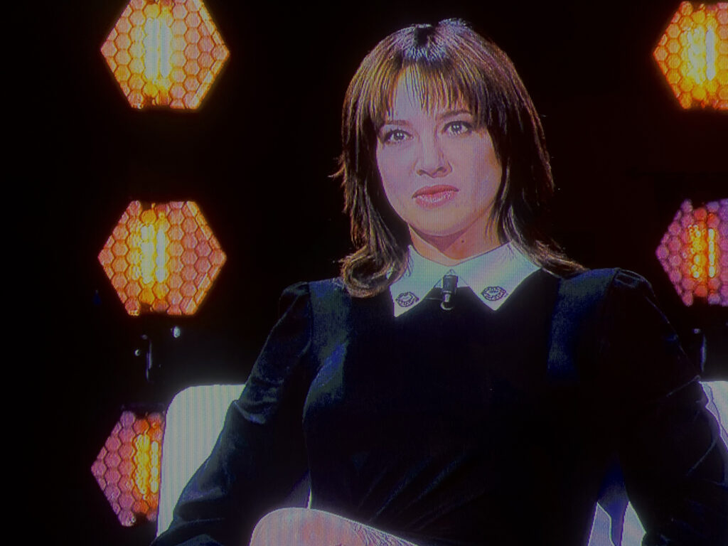 E l’altra ospite,Asia Argento che preferisce un look acqua e sapone.