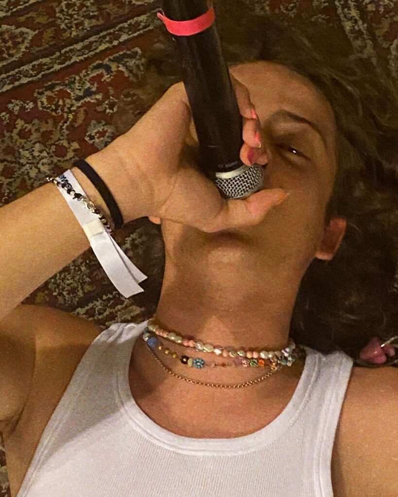 Lo sento anche addosso a me…. ma voglio dirvi che, in tutta questa confusione, sto lavorando come un pazzo, non mi fermo mai… musica nuova, spero che siate impazienti, sto lavorando a nuovi pezzi e non vedo l’ora di farvi sentire quel che ho da dire, da cantare. In tutto questo, io sono sdraiato a terra, con il mio microfono, a preparare un tour estivo. Cantando la mia musica, con la mia voce. ed è la cosa più importante, spero lo sia anche x voi. La musica”.