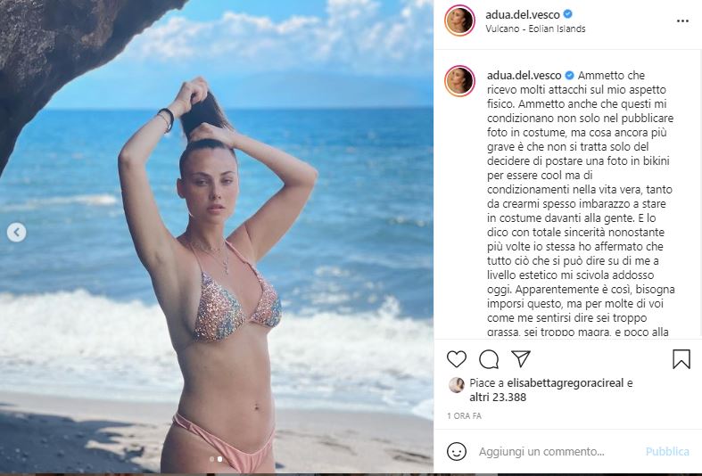 Tuttavia Rosalinda continua ad essere obiettivo di attacchi sui social per via del suo corpo morbido, e dopo l’ennesima cattiva frase da parte di un hater nei suoi confronti “Adua del Vesco vicino a Zenga è proprio grassa”, l’ attrice sbotta replicando in uno sfogo social con queste parole: