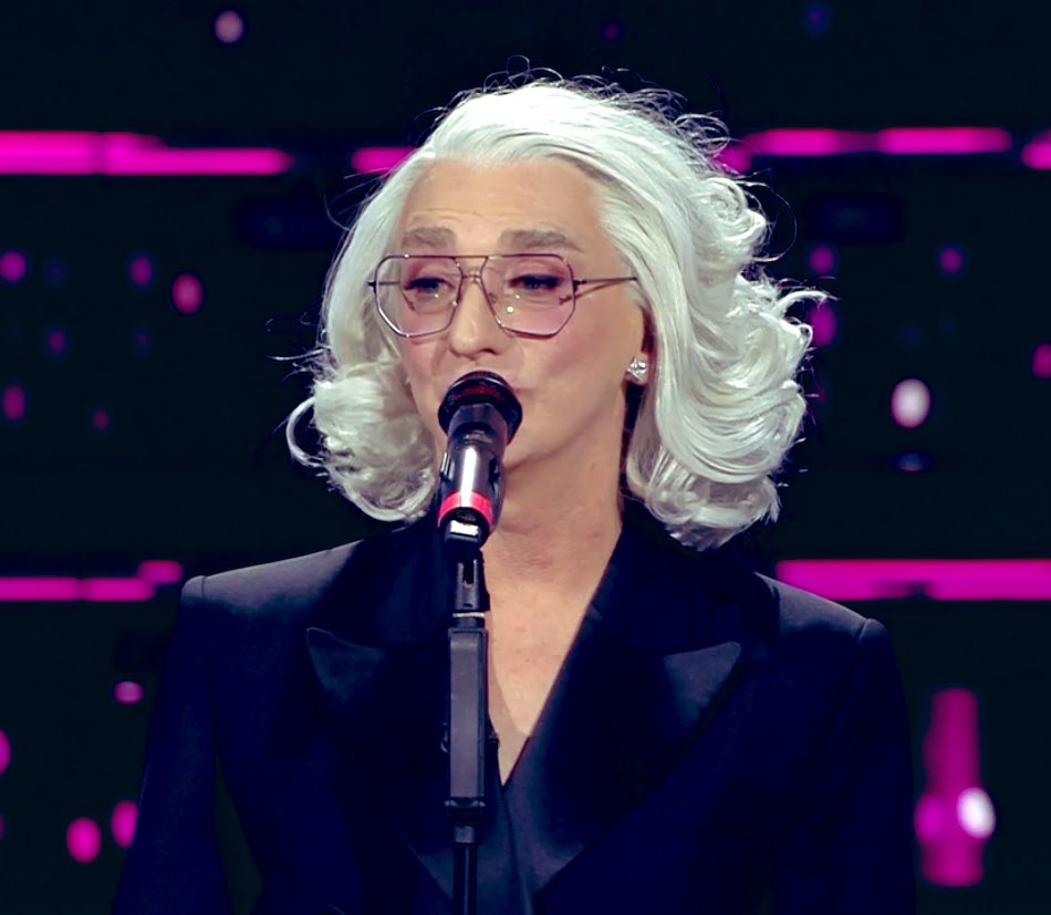 Scende le scale fasciata in un vestito di raso blu notte, statuaria, il bob argenteo vaporoso e sbarazzino; ed in un attimo ruba la scena, stregando pubblico e critica. A coloro che non sono andati oltre la parrucca ed il trucco; ha dimostrato di non essere “solamente” modella, cantante, sceneggiatrice, attrice, pittrice; ma un’artista completa dalle infinite sfaccettature.